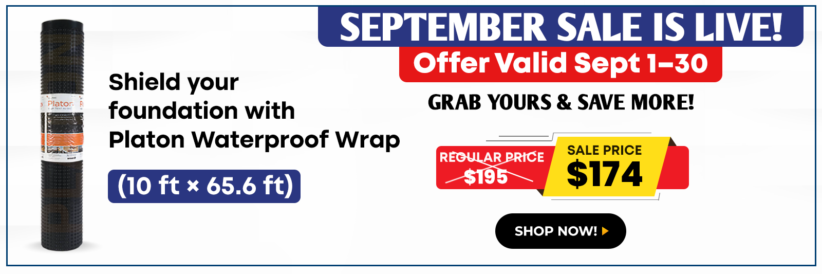 Platon Waterproof Foundation Membrane Wrap, 10 ft x 65.6 ft