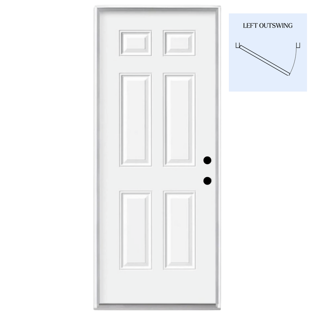 These solid outswing steel insulated doors are built for strength, security, and long-term performance. Featuring a classic 6-panel design and a durable steel skin, they offer excellent protection against weather while maintaining a clean, traditional appearance. Each door comes prehung in a wood jamb and is factory-prepped for easy installation.